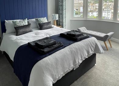 Climb up to the first floor to find two bedrooms, a king-size room with a delightful dressing area and views across the town and harbour, and a double with its own en-suite shower room; a spacious bathroom completes this floor.