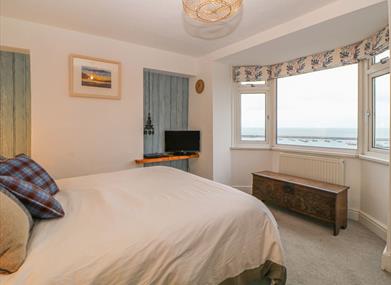 The bay window in the living room/diner benefits from a window seat offering a lovely place to take in the views of the boats down below, with a sofa and armchairs waiting for you to wind down with some entertainment from the TV.