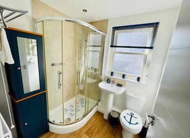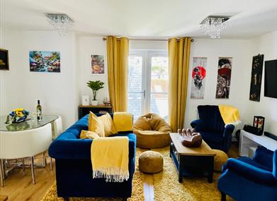 Captains Rest has a bright and contemporary lounge-diner with an oriental twist. A Juliet balcony with double doors lets the outside in and offers a view over the rooftops of colourful Brixham. The living area is well equipped with a 50” Smart TV with surround sound speakers and woofer, DVD player, Bluetooth speaker system, DVD library with over 400 titles for all ages.