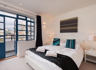 Queens Quay is a unique development of just eight waterfront apartments in a central position on Torquay’s vibrant harbourside. Formerly a hotel, the building has been completely re-developed and finished to an exceptional standard, whilst maintaining its original Art Deco charm. This first floor apartment was recently awarded the prestigious 4 star gold classification.