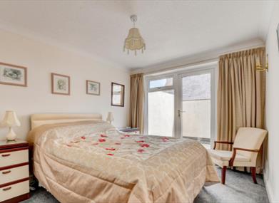 The main bedroom has a double bed with bedside tables with bedside lamps.