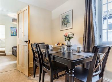 As you enter 3a Edinburgh Villas you find yourself in the small kitchen area, equipped with all you could need for a comfortable stay. The kitchen area then leads into the cosy living room area with seating and a Smart TV. The living area then leads into a small dining area. There is a handy separate toilet on the ground floor also. Up stairs to the first floor is where both bedrooms are situated. The main double bedroom is at the back, with an en-suite shower room, whilst next door is the second bedroom containing bunk beds, again with an en-suite shower room. Edinburgh Villas is located just outside of the heart of Torquay town, towards the top of the town itself. All you could need, from a nearby shop to a public car park, is just across the road. It is a nice leisurely stroll down into town to all the local bars, pubs and restaurants, as well as just a short distance from the local green, courts and beaches. This property can be booked with 3 Edinburgh Villas (UK35094) to accommodate up to 12 guests.