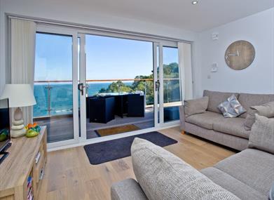 Collapse in a satisfied heap after a long day at the beach, or exploring the South West Coast path. French doors flood the living area with natural light, allowing the property to show off its open spaces and luxury furnishings in every beautiful detail.