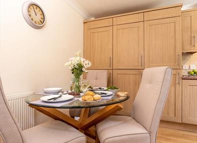 Glass table with seating for four people