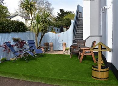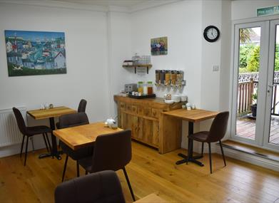 A full cooked breakfast is included in the price, with other options including gluten-free and vegetarian available. Earlier breakfasts and takeaways can be arranged for you with prior notice. For our younger visitors we supply colouring sheets and pencils for extra entertainment during breakfast time in the dining room, located on the lower ground floor. You can relax and enjoy a coffee or evening drink on the decked terrace area and take in the English Riviera’s delightfully mild climate. Guests can access the communal fridge, stocked with a range of soft drinks and chocolate and has an honesty box.