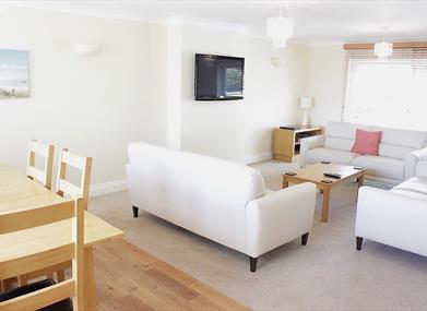 Dual aspect lounge with wall hung Plasma TV, Freesat and DVD Player.
