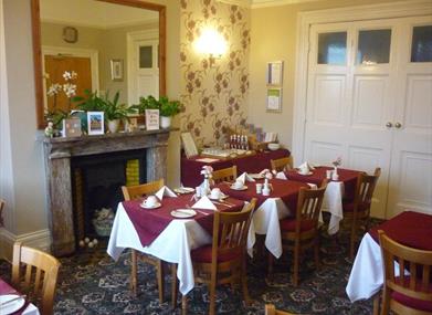 The breakfast room, like the adjoining main lounge, looks south over the garden and surrounding areas. With co-ordinated decor and a period fireplace, this is the perfect setting to enjoy your light or hearty English breakfast. Please let us know on booking if you have special dietary needs. We do have one ground floor bedroom if required.