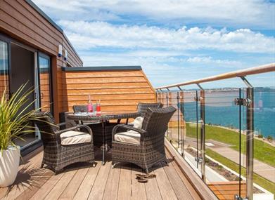 What makes this apartment such a winner is the super oversized timber decked balcony that faces directly over the woodland opposite and out over the sea towards Torbay.