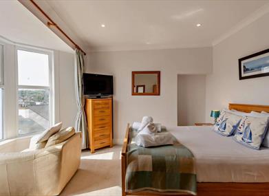 Enter this three-storey property and you’ll be welcomed into the open-plan lounge kitchen/diner, with plenty of comfy seating to sit and relax whilst watching a film on the Smart TV with Blu-ray player. The dining area has space for everyone and is perfect for those family meals. Heading into the well-equipped kitchen with electric oven and gas hob, microwave, fridge, freezer, coffee machine and dishwasher, from here you’ll find a separate utility room with washing machine, tumble dryer and WC. head up the stairs to the first floor and you’ll find the first two bedrooms. a king-size with TV, plenty of storage space and impressive views out over Brixham and beyond and a twin bedroom with TV. Completing the first floor is the main bathroom with freestanding bath, separate shower and WC. Head up again to the second floor to the master bedroom with double bed, plenty of storage, TV and en-suite shower room with shower and WC (The master bedroom has restricted head height due to vaulted ceiling). On this floor you will also find a single bedroom. Please be aware both bedrooms have restricted head space due to vaulted ceilings.