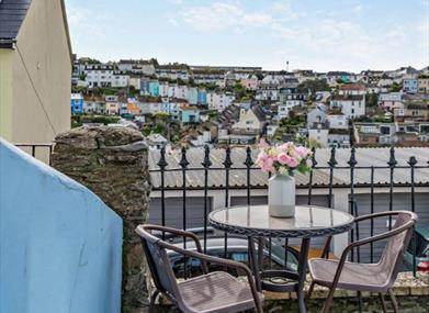 The property is accessed via 14 steps to a small terrace to the front of the property, with a small table and chairs. To the rear of the property is a decking area with garden furniture. There is on-street parking available on a first come first served basis. There is a public car park a short walk away.