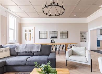 Featuring a large sitting and dinning room that opens onto a well stocked kitchen, the living area works well for entertaining in an open plan way or by separate living areas. From here you can access the "Coombe House Inn" and the back garden which is great for a morning coffee in the sun.