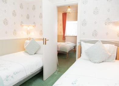 There are upper floor and ground floor guest rooms, all decorated to a high standard with modern furnishings and en-suite facilities and showers. There are single, double, twin and family rooms and each room has full central heating, a safe to store your valuables, an ironing board, flat screen TV with Freeview and tea and coffee making facilities. Guests are provided with a key to the outer door in the bar lounge area which leads to the car park and footpath as well as a room key so you can access your room at any time during the day and evening. For added convenience there is free Wi-Fi and a pay phone in the building. There are 8 car parking spaces for guests arriving by car, and there is unrestricted parking on the road.