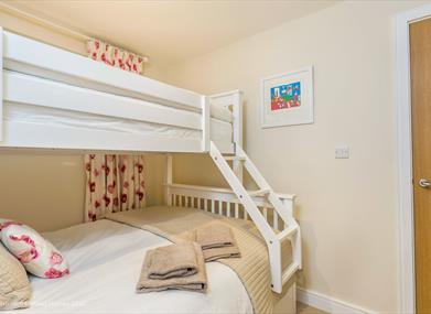 Bunk beds, with a double bed on the bottom level