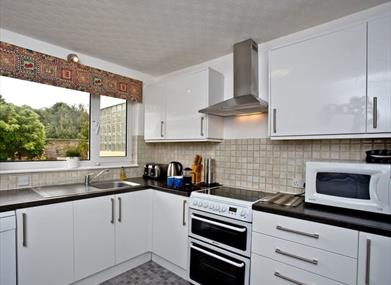 - Kitchen with gas hob, electric oven, microwave, fridge, freezer and dishwasher