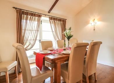 Relax together on the comfortable sofas discussing what exciting adventures are in store for the rest of your stay, or enjoy a delicious meal at the dining table, with the patio doors opened out into the garden and a warm summer breeze diffusing around the room.