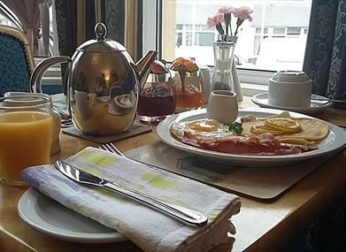 Our breakfasts are highly recommended by all who stay with us; made with local produce, we achieved an AA Breakfast Award for 2020. This coveted award is only presented to establishments serving breakfasts using fresh, local ingredients that exceed the quality requirements of a 4* star rating. Breakfasts include Traditional Full English with delicious local sausages, bacon and free range eggs with Vegetarian and Vegan options, Scrambled eggs & smoked salmon on toasted muffins, Devonshire Hog & Hen, American (bacon & eggs with homemade cinnamon pancakes and maple syrup), Continental and many other lighter options. Gluten free and lactose free options are available on request.