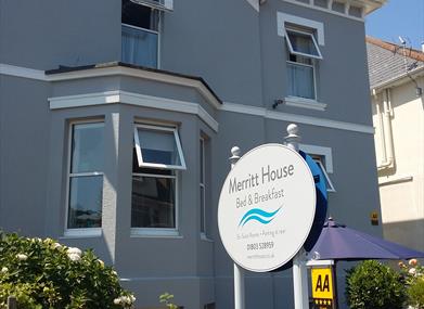 Follow signs for Torquay, then to Torquay Seafront, and then to Paignton seafront. From Esplanade Road along Paignton seafront, turn right into Torbay Road, opposite the cinema. Take the first turning on the left into Queens Road. Merritt House is three quarters of the way along Queens Road, past the sports field, on the right-hand side (7 Queens Road).