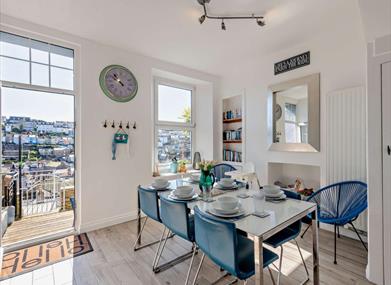 Inside, this sympathetically-modernised home is sunny and bright with oak flooring and fresh decor throughout. When you’re not dining out in Brixham, rustle up family meals in the good-sized modern kitchen before taking to the chic dining area that opens onto the sun deck. On the ground floor, a sunny lounge is an inviting space in which to relax all day long, with a Smart TV and wonderful views. When the sun is shining, there’s no better place to enjoy a morning cup of coffee or evening glass of wine than on the delightful sun deck, while taking in the sights, sounds and smells of the harbour below.