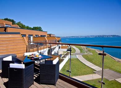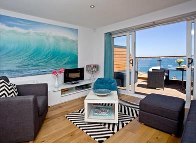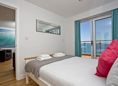 The apartment is full of light and the patio doors leading out from the living space and the main bedroom onto the oversized decked balcony entice you outside to draw in the sweet fresh sea air whilst savouring the seascape before you.