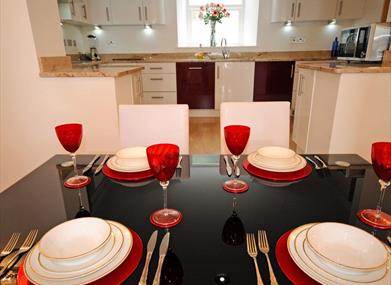 The open plan kitchen/dining area is furnished to a high specification