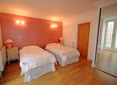Furnished with twin beds and glass fronted fitted wardrobes