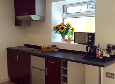 Breakfast is supplied in the kitchen and consists of tea, coffee and orange juice, croissants, cereals, yogurts and fruit. Hot chocolate and biscuits are also provided. ( A cooked breakfast is not being supplied with the current situation and food is now eaten in your rooms. )