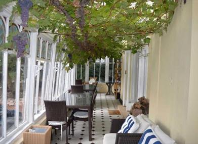 Conservatory leading out to the private back terrace garden. One low step to access the property with one flight of internal stairs with shallow treads.