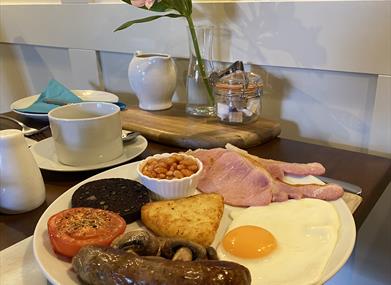 A full English Breakfast is provided to guests each morning and all ingredients are locally sourced and are of the finest quality and of course there are the usual cereals, homemade Granola, Greek Yogurt, fruit etc.