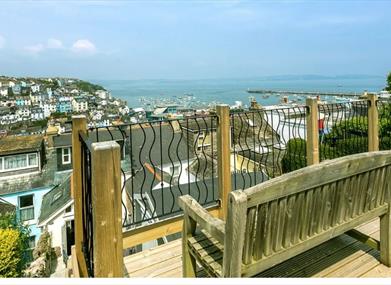 A small patio at the front provides seating with a view of the inner harbour and the terraced rear garden has a BBQ and a raised deck area with spectacular bay views.
