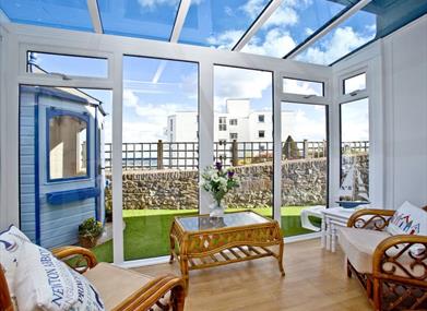 Three bedrooms continue the nautical theme, the large double bedroom on the ground floor has its own conservatory which leads to a delightful outside space with a summer house and two garden loungers. Next to the double bedroom is a four poster room with views over Torquay town centre. The third bedroom is a twin bedded room on the first floor which has a spectacular elevated view over Torquay town centre and beyond, next to this bedroom is a bright shower room.