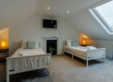 On entering the townhouse, to your left find the cosy lounge area with Smart TV, sound bar and original feature fireplace, perfect for unwinding. Down the hall to your left is the dining area with table and seating as well as a games cupboard for family nights in. Through to the well-equipped kitchen there is a small breakfast table and everything you’ll need to cook up an evening meal. Under the stairs, there’s a convenient ground-floor WC. Moving upstairs to the first floor, find the family bathroom with a double walk-in shower, a freestanding roll-top bath with a shower over and a WC. Further down the hall is the first king-size bedroom, and then across the landing and up four stairs to your right is another king-size room with homely touches. To the front of the property there is a master king-size room with ample floor space, a Smart TV and large bay window. Tucked away upstairs on the second floor is the twin room; it’s great for children as there is plenty of floor space for playing games, watching films on Smart TV. Please note that the head height in this room is slightly restricted due to a sloped roof.
