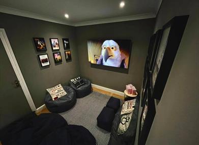 Movie Room - 65inch TV compete sky package including sports, BT sport & movies. Perfect to chill out and watch the latest movie. With comfy furnishings & bean bags, snuggle up and get the popcorn out!