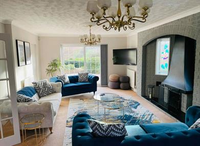 Lounge - Large living area with 55 inch flatscreen TV with full SKY package including sports, movies & BT sport. Side cabinet with family games. Large gas fireplace.
