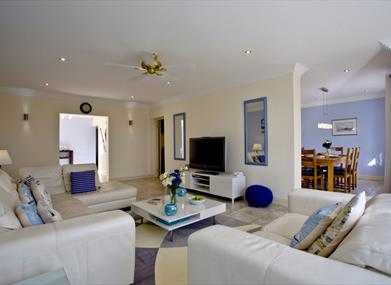The living area is beautifully finished with marble flooring throughout in an open plan style, all designed to provide you with easy access to the front terrace to enjoy the views. The living area is beautifully presented with a range of seating including two leather sofas and a fantastic entertainment system with the flatscreen TV that comes with sky plus HD, a Blu-ray player, a Nintendo Wii and an iPod docking system.