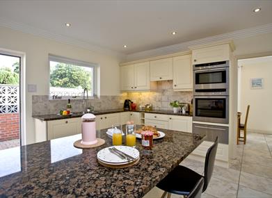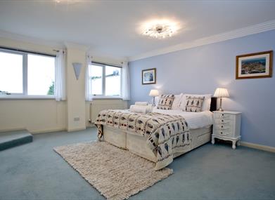 The modern kitchen has direct access to the garden, a sociable area with a breakfast bar that seats four people and is fully fitted with all of the modern appliances including a dishwasher, electric oven and a hot draw, fridge freezer and a microwave. There is a separate utility room that houses the washing machine and an additional freezer. To the side is the dining room where you can relax with an evening meal and enjoy the fantastic views out to sea and has a dining table that seats six people.