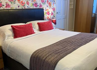 Our two Premier Doubles are our largest rooms, both refurbished to a high standard including super-kingsize beds, smart TV 43", mini bar, tower fan, sofa, coffee table and tub chairs, for additional guest comfort.