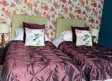 One of these rooms can be configured as either a super-kingsize double bed or as twin beds, depending on guest preference.