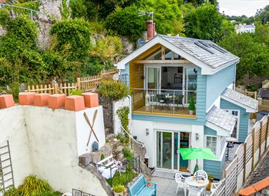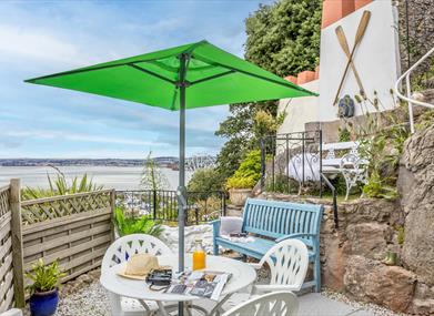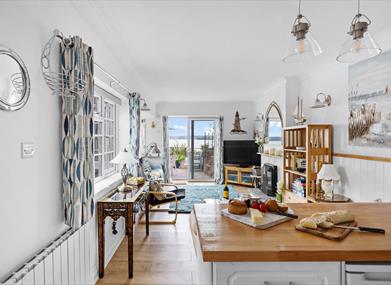 The moment you step inside The Boathouse, you’ll be captivated by the refreshing open-plan layout as the kitchen seamlessly merges with the living area, offering panoramic sea views of the marina and Torbay. As you settle into the cosy living space, let the sea air flow through, or take to the balcony to broaden the amazing vista. In the cooler months, also enjoy the warm glow of the wood-burning stove (ample wood, kindling, and firelighters are provided). Next to the kitchen area, the high dining table seats four. The feature-packed smart TV lets you stream your favourite on-demand programmes (subscriptions required) and adjusts to the ambient light for uninterrupted viewing, come rain or shine. There’s also a DVD player for your own choice of movies.
