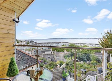 Upstairs there are two further bedrooms. To the rear, a nice-sized double bedroom, and to the front, the king-size bedroom with a large open-plan balcony to enjoy yet more spectacular sea views. Each bedroom is also equipped with a smart TV.