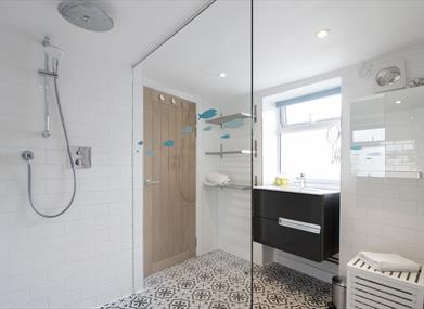 Ground floor: Entrance door, engineered wood floors, hallway, twin bedroom with sea & harbour views, double bedroom with rear courtyard, toilet room with W/C and washbasin and large fully tiled family bathroom/wet room with walk-in rainfall shower, wash basin and another W/C