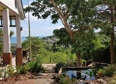 A private garden veranda and large shared decking area overlooks Ilsham Valley, perfect for relaxing, plus there is a large enclosed garden and pond area.