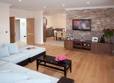 Heated oak flooring in the lounge and hallways.