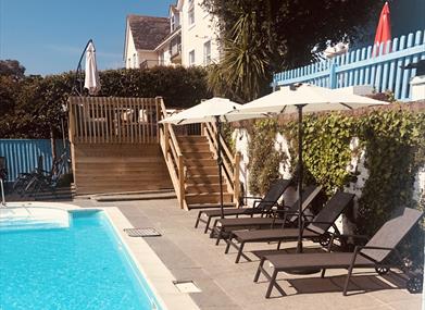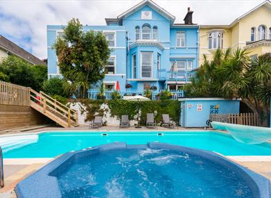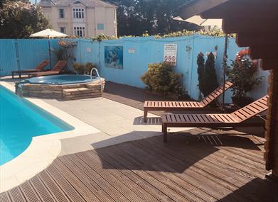 The guest house features a seasonal outdoor swimming pool & Hot tub, set in a private garden with a sun terrace to enjoy the lovely Torquay weather. We are fully licensed and have a venue which can be hired for private functions and events.