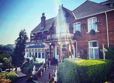 From the Clock tower proceed up the hill (Torwood Street) towards Babbacombe. Braddons Hill Road East is the first turning on the left after the Museum. The Robin Hill is the first entrance on the right side.