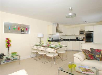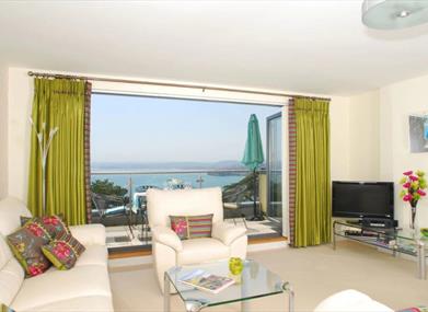 Living area: With Freeview TV, DVD player, CD player, a selection of DVDs, CDs and games and bi-folding doors leading to balcony.