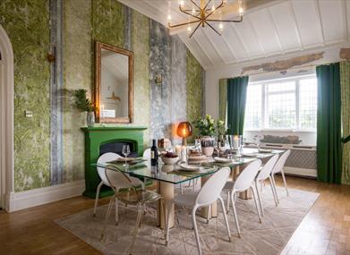 Enter a kingdom of ritzy indulgence when you take exclusive hire of Vane Tower – its elevated position provides breathtaking 360-degree panoramas, stretching across Torbay to the open sea and inland to Dartmoor. From sunrise to sunset, the views are truly something to behold, and guests can soak them in from every corner of the property – whether enjoying family breakfast on the sea-facing terrace, relaxing in the six-person hot tub after a dip in the sea, or unwinding with a good book in the light-filled conservatory.