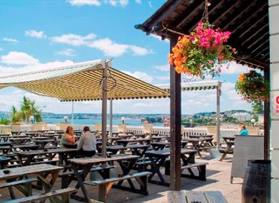 When the sun is shining you can relax outside on our large sun terrace enjoying the south facing panoramic sea views of Torbay.