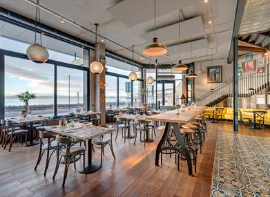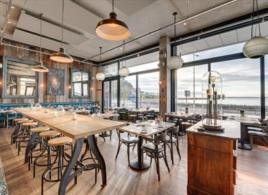 Overlooking the bay and located in the award winning Abbey Sands complex, our bistrot can seat approximately 200 diners and features two floors, a recently refurbished balcony (fully covered with heaters) and terrace area. Our customers are able to enjoy the stunning views of the seafront whilst they dine with us.