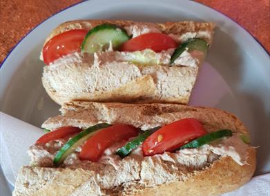 If you choose to eat in, there is a warm welcome in our light and airy dining room where we can also offer a range of beers, wines and ciders. We are dog friendly so please feel free to bring along your furry friends too.