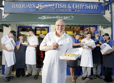 Hanbury’s Famous Fish and Chips of Babbacombe have been serving fantastic fish and chips for over four decades. Hanbury’s Takeaway now has a licence to sell alcohol. As well as offering Hanbury’s Amber Ale & Hanbury’s Craft Lager (made to our own recipe) we have a selection of Beers, Lagers and Wines to enjoy with our Takeaway fabulous fish and chips. Well-loved locally, people will travel several miles for a plate of Hanbury’s fish and chips. Holidaymakers also come back year on year to relish the Hanbury’s experience.